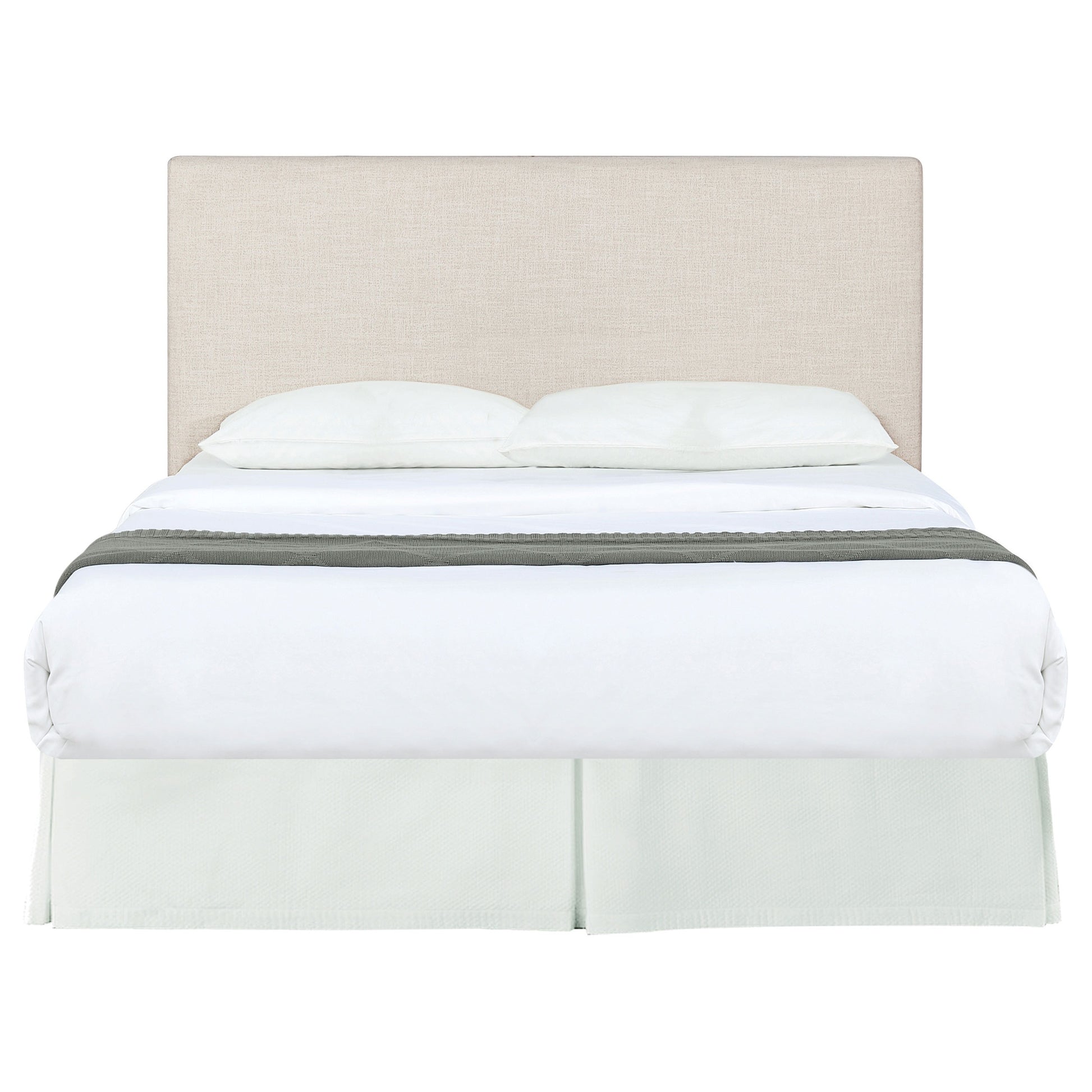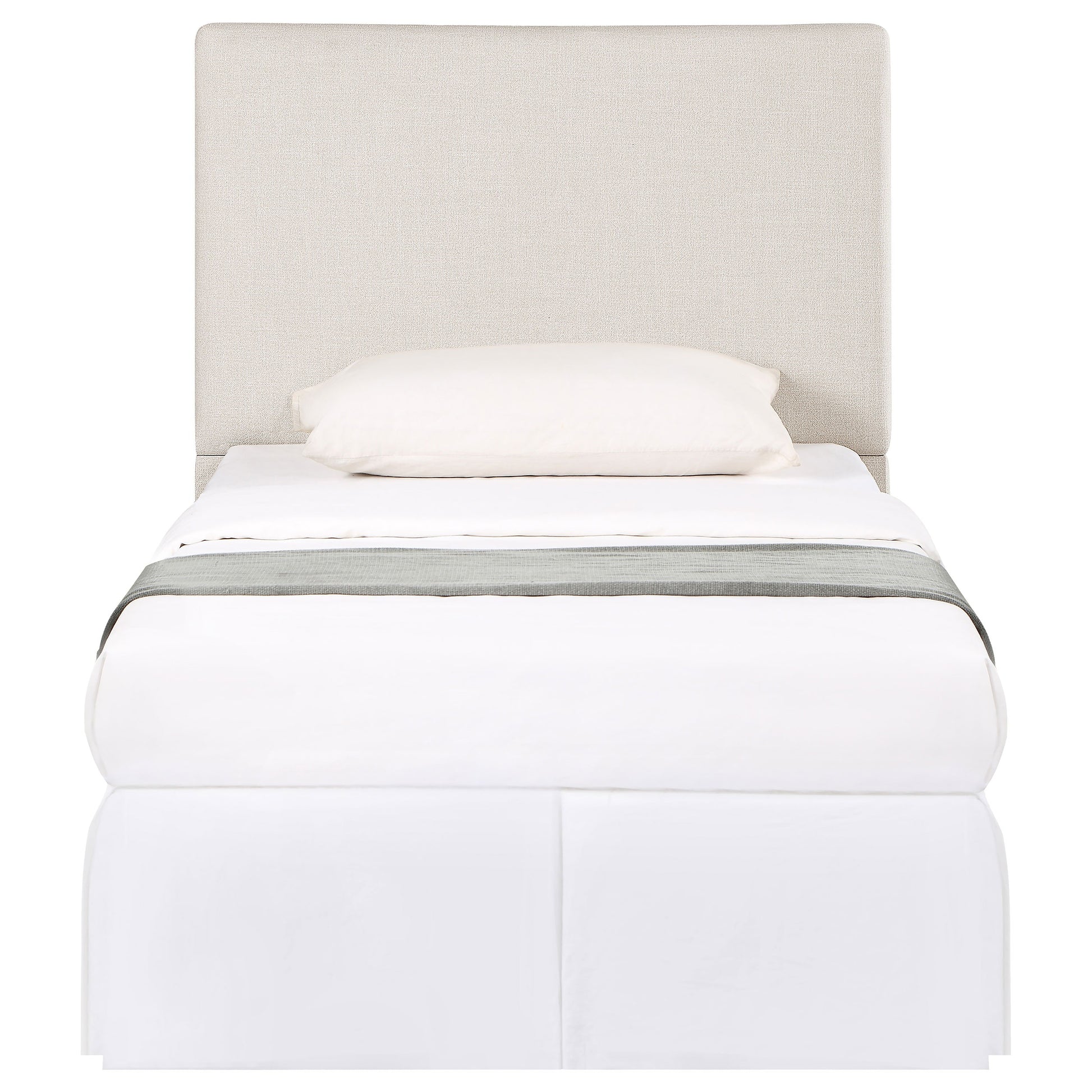 - Twin headboard upholstered in sand fabric with streamlined rectangular design